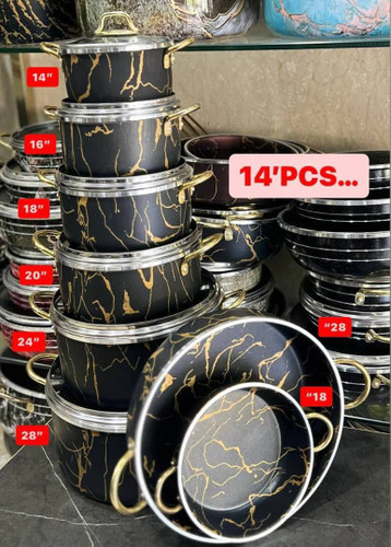 سرویس قابلمه 14پارچه ماربل دسته طلایی