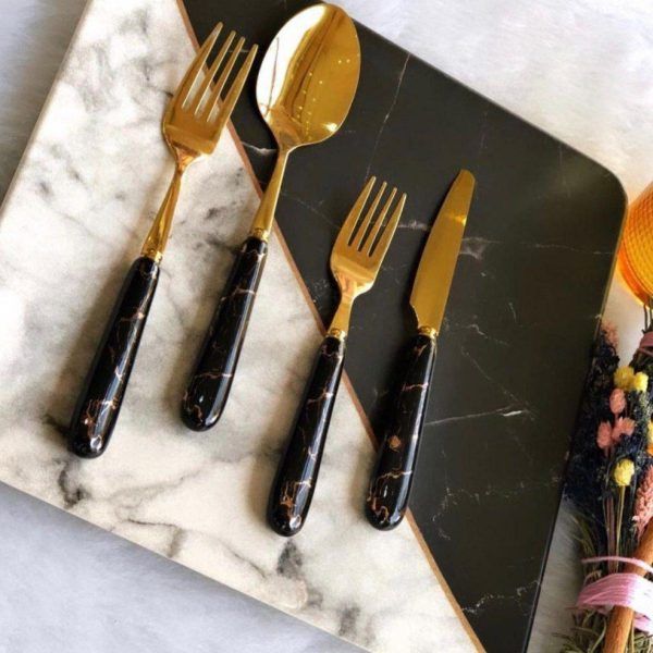 سرویس قاشق و چنگال ماربل همراه کارد و چنگال میوه خوردی وارداتی