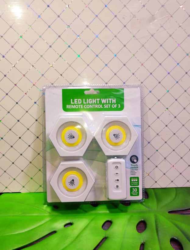 چراغ کابینتی سه تایی ریموت دار تکرار شد دفعه قبل رو در عرض یک هفته تمام کردین سه تا لامپ پشت چسبداره که سه تا باطری قلمی میخوره نور قشنگ و زیادی داره یه ریموت(کنترل) داره که هم میزان نور و هم خاموش روشن شدن لامپها دستتون باشه خود لامپ کلید داره واسه روشن یا خاموش کردن هر سوالی دارین تو کامنتها بپرسین