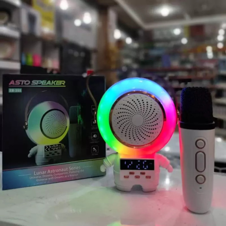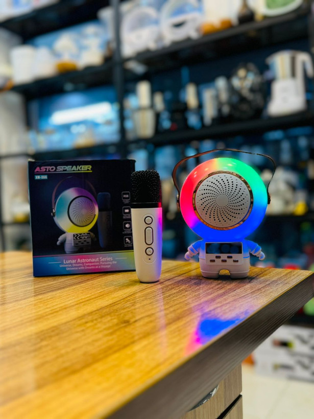 این محصول دارای میکروفن هست که تغییر صداهم انجام میده علاوه بر اسپیکر ساعت هم هست همچنین از USB و AUX و حافظه جانبی پشتیبانی میکند