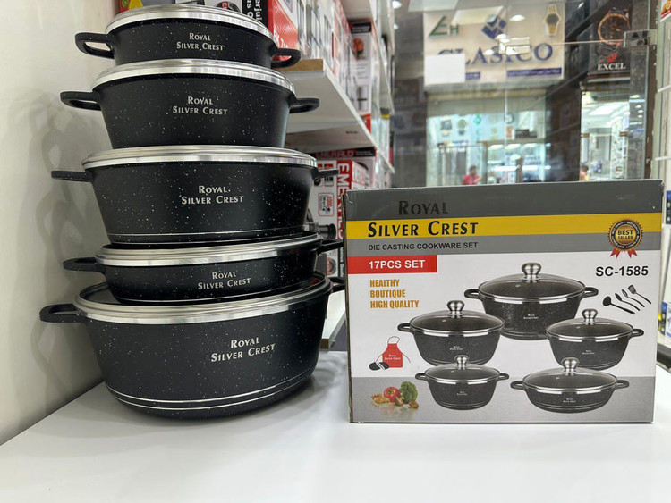سرویس قابلمه برند سیلورکرست گرانیت ۱۷تیکه دارای ۳ تیکه کف گیر و ملاغه نسوز
