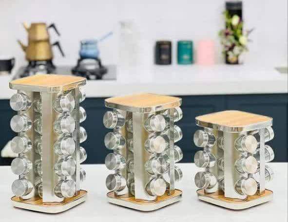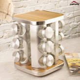 جا ادویه استیل و بامبو ۱۲ عددی چرخان درب نمک باش کیفیت درجه ۱