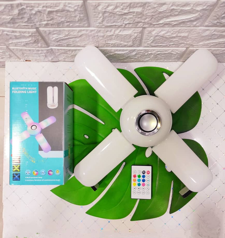 لامپ 4 پـر سقفی هوشمند بلوتوث دار و اسپیکر دار رسید دارای کنترل از راه دور دارای ۱۳ حالت رقص نور در چند رنگ متفاوت رقص نور خاص و زیبا