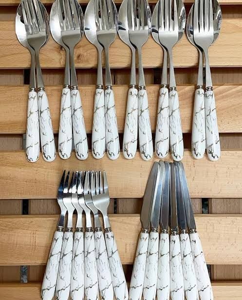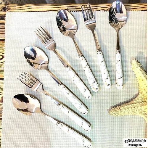 سرویس قاشق و چنگال ماربل همراه کارد و چنگال میوه خوردی وارداتی